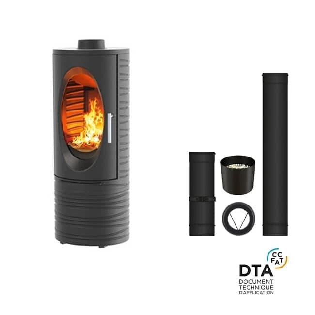 Avec sa grande taille (H112*Ø 42cm – foyer accueillant des bûches jusqu’à 33 cm), la vitre ronde de ce poêle vous permet d’admirer des flammes authentiques et d’écouter l’agréable crépitement du bois.