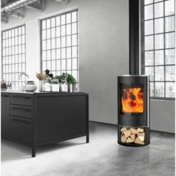 Grâce à la grande fenêtre de visualisation avec chasse d’eau intégrée, vous avez toujours une vue impressionnante sur le feu. L’arrivée d’air se fait par-derrière, afin de garder un design épuré à l’avant. Enfin, le poêle dispose d’un compartiment à bois pour stocker le bois de chauffage.