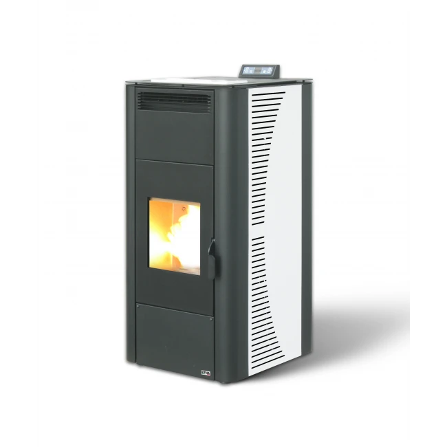 Pour encore plus de confort, vous pouvez programmer les horaires de chauffe de votre poêle en semaine et week-end grâce au module programmation de ce poêle. Vous pourrez alors vous réveiller dans une maison déjà chauffée. Pour encore plus de praticité, une télécommande est livrée avec ce poêle pour pouvoir programmer les horaires de votre choix n’importe où chez vous. Avec son design moderne et épuré, ce poêle ne sera pas uniquement un appareil de chauffage mais un élément de décoration à part entière. Ce poêle thermo à granulés est disponible en bordeaux, blanc ou anthracite.