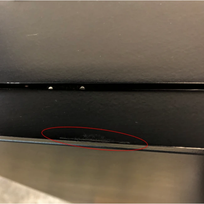 Des fines rayures sont le long de la face avant du côté droit.