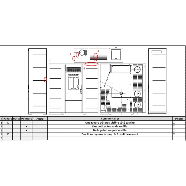De la peinture commence à s’écailler sur le dessus du poêle.