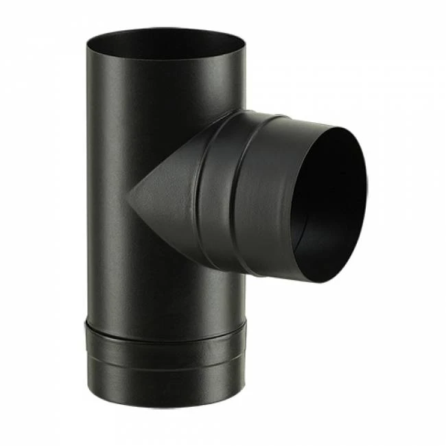 Té avec tampon émaillé pour le raccordement arrière sur le poêle.